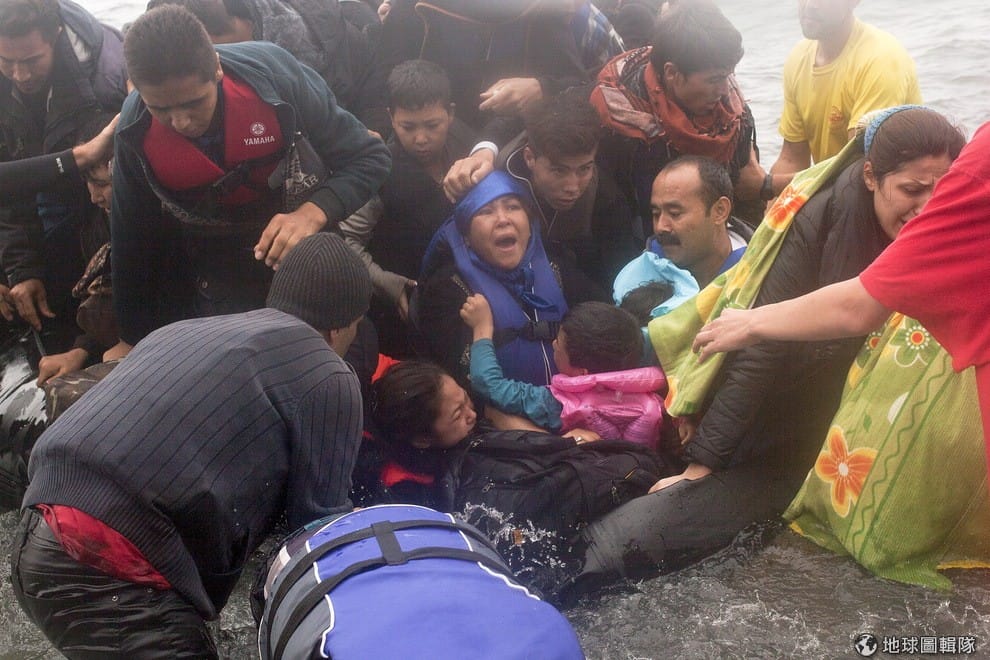 希臘的列斯伏斯島(Lesbos)岸邊,可以見到難民們從超載的橡膠船上爭先恐後上岸,根據國際移民署統計, 2015年透過船隻橫渡地中海進入歐洲的移民人數超過 43萬人,當中有 30.9萬人都是選擇在希臘上岸,轉往歐洲其他國家。