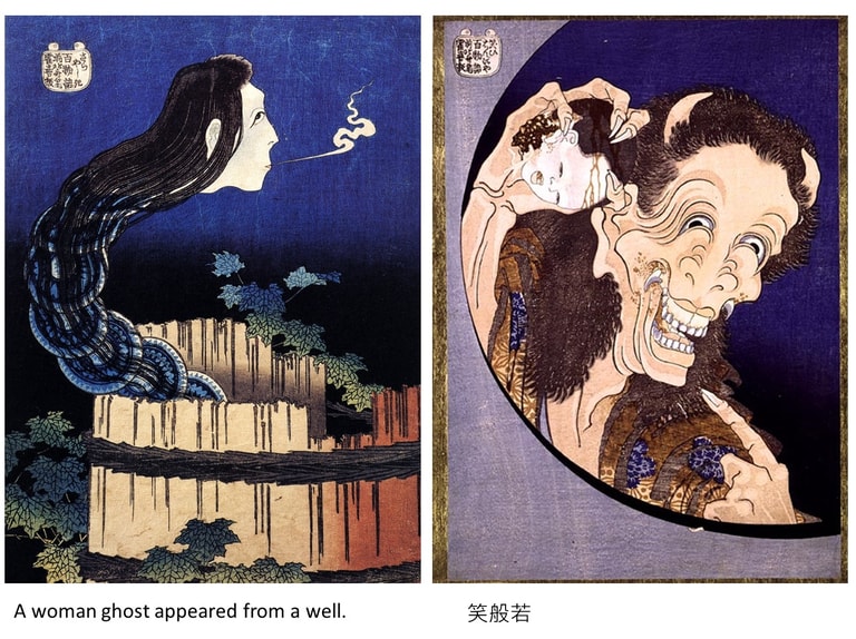 百物語。圖左為皿屋敷,圖右為笑般若。