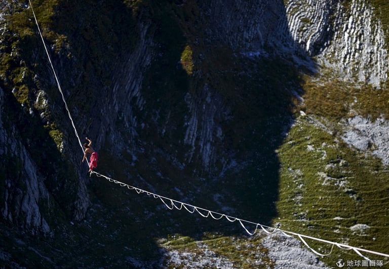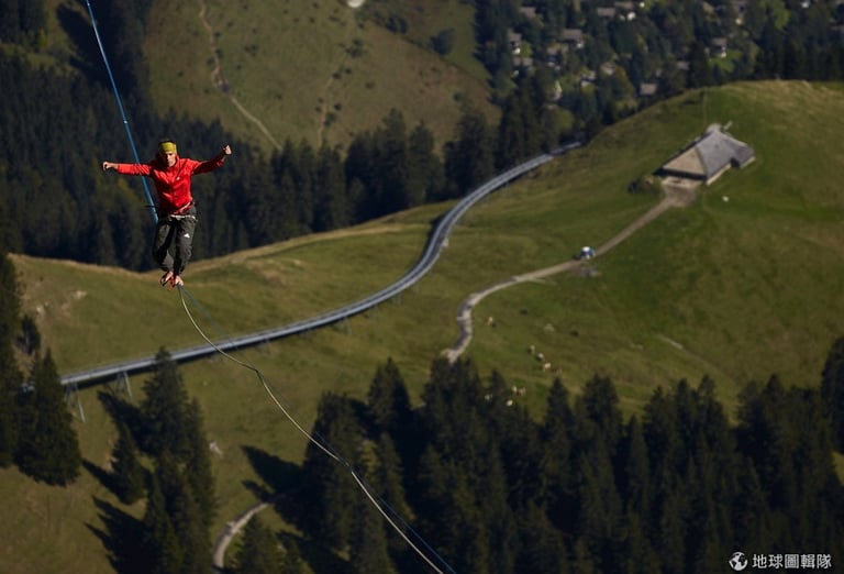 今年 9月底時,來自奧地利、德國和瑞士的走繩好手齊聚阿爾卑斯山脈的莫雷松山(Moleson)上,他們要挑戰六種距離的走繩關卡:最短 45公尺、最長達 495公尺,看最後誰能一路闖關完成所有的挑戰寫下新紀錄。