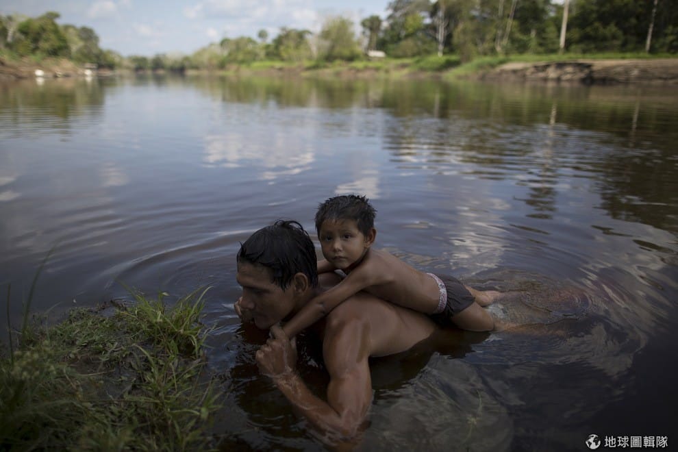 亞馬遜州一處名叫Vila Nova do Amana的社區內,可看到男子背著孩子在水中游泳,他們所住的村落位在亞馬遜心臟地帶的Mamirauá保留區,這裡長年以來深受缺電之苦,巴西的聖保羅大學與Mamirauá保留區合作把太陽能發電技術引入當地,希望藉此替居民留下重要的漁業和蔬果等生計來源,太陽能發電也是該保留區的家戶用水及娛樂用電的重要來源。