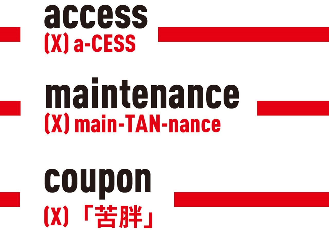 把重音唸在第二音節是錯的,重音在第一音節,同類錯誤還有mechanism:[ˋmekənɪzəm]。
