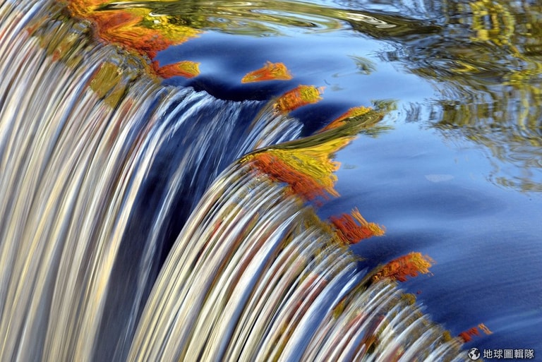 美國康乃狄克州的黑莓河(Blackberry River)倒映出鮮橘色的樹林景緻。