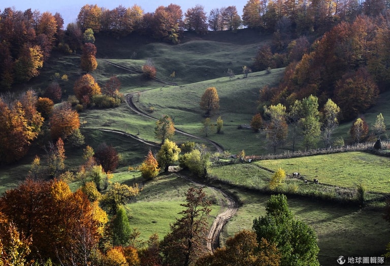 科索沃的德拉加什當地,遠望山區可見一棵棵轉紅的樹木。