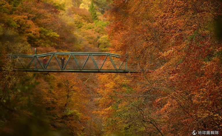 蘇格蘭的皮特洛赫里(Killiecrankie)當地,秋天盛開的楓紅彷彿要把橋樑都淹沒。