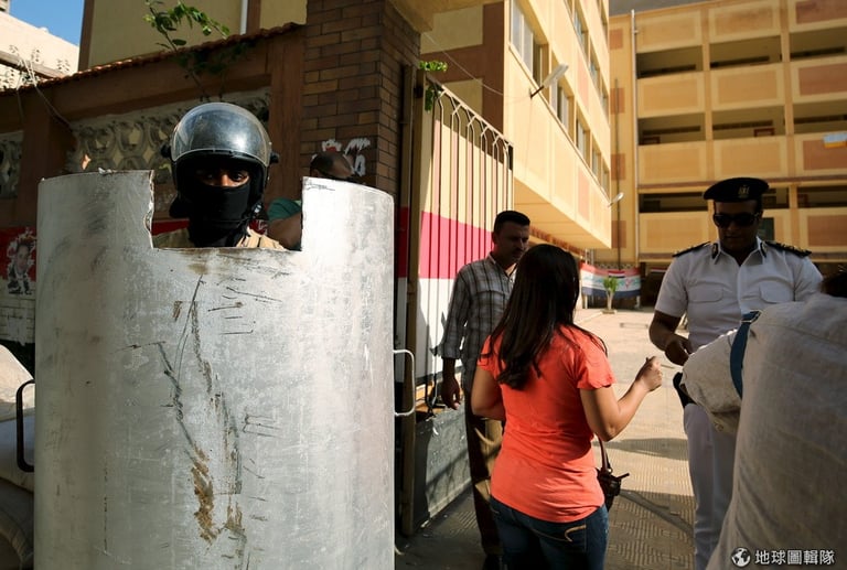 擔心伊斯蘭激進分子會趁著大選作亂,埃及在周末的投票活動中出動重裝兵力維安。圖為民眾正要進入投票所投票。2015年國會大選結果最快在 12月初會有結論。