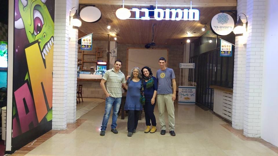 Humus Bar老闆和員工 20號時貼文謝謝支持他的各方朋友。這間餐館位在以色列法維金市購物中心"M"內。