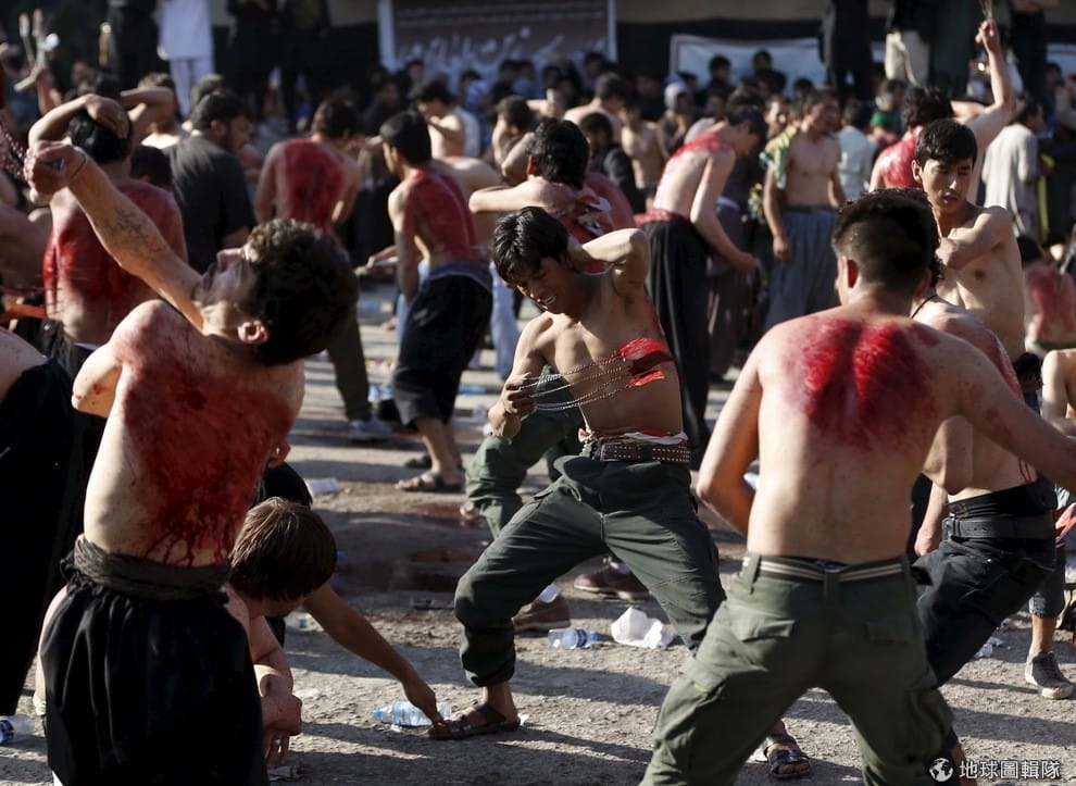 什葉派穆斯林鞭打著自己的背,在背上留下一條條的血痕。當地正值年度大節日「阿舒拉節」(Ashura),這個節日是要紀念先知穆罕默德的孫子阿里(Hussein ibn Ali)在 7世紀時被殺。