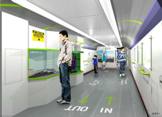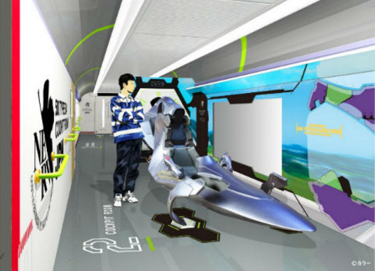 「500 TYPE EVA」的 1 號車內設置展示與體驗室,展出新幹線和 EVA 相關圖片影像、立體模型等,還設有實物大小的駕駛員座艙,讓乘客在體驗乘坐快感之餘,還可透過其正前方螢幕與使徒來場對戰遊戲。不過,若想進入 1 號車參觀及體驗乘坐駕駛員座艙,可得事先在官網預約抽選喔。