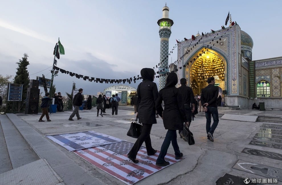 人們踩著地上的美國和以色列國旗進入首都德黑蘭北部的清真寺,紀念伊斯蘭教什葉派重要的阿舒拉節(Ashura)。現在正值伊斯蘭教重要的「穆哈蘭月」(Muharram),每到「穆哈蘭月」第十天,人們就會齊聚一堂紀念先知穆罕默德(Mohammad)的孫子阿里(Hussein ibn Ali)的死亡,阿里在 7世紀時,帶領一群烈士在巴格達西南部的卡爾巴拉(Kerbala)遇襲,隨後全數陣亡。