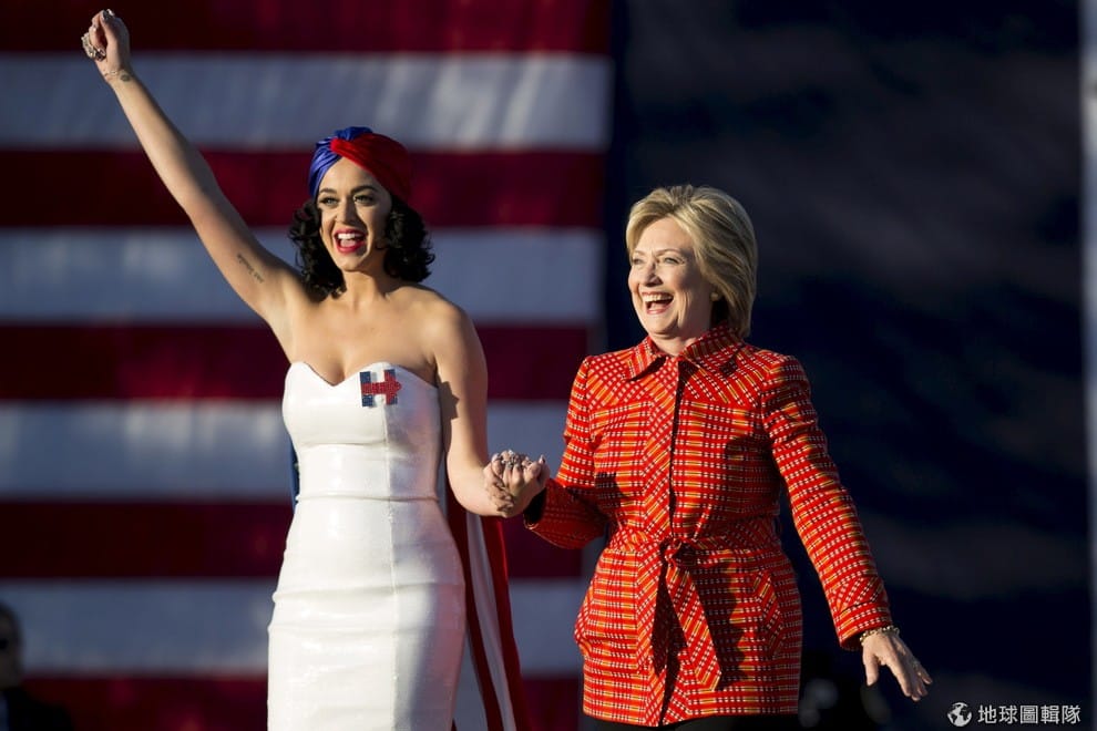 24號這天,美國流行歌手凱蒂佩芮(Katy Perry)來到民主黨總統候選人希拉蕊(Hillary)的造勢現場,胸前別著大大的「H」別針,表態支持希拉蕊,而希拉蕊的先生前美國總統柯林頓(Bill Clinton)也在現場。