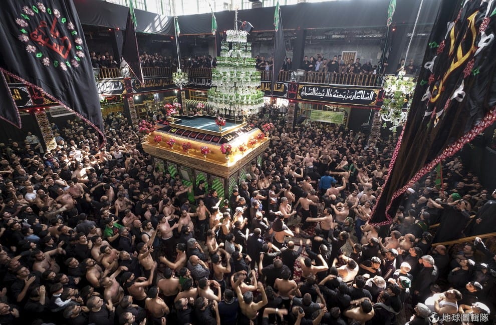 特地來參加阿舒拉節的伊斯蘭教什葉派信徒,一邊打自己一邊繞行先知穆罕默德(Mohammad)的孫子阿里(Hussein ibn Ali)的墳墓,場面神聖莊嚴。