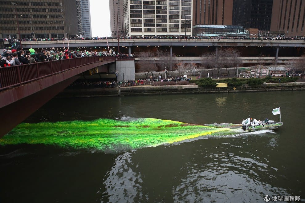 美國芝加哥當地,因為這邊有許多愛爾蘭人,所以聖派翠克節也是當地非常重要的節慶活動之一!每到這天,最有名的活動就屬把河面染上綠色這件事情了!Scott Olson/Getty Images