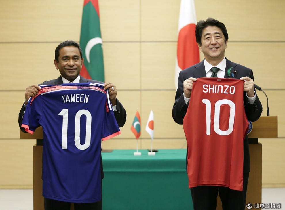 左邊拿著藍紫色球衣的就是馬爾地夫現任總統雅門,他在 2013年接任總統一職後也遭到不少批評,外界認為他對前任總統的判決不公,同時有媒體認為雅門上任後不斷撤換身邊的人是想「清理門戶」。