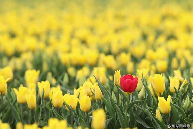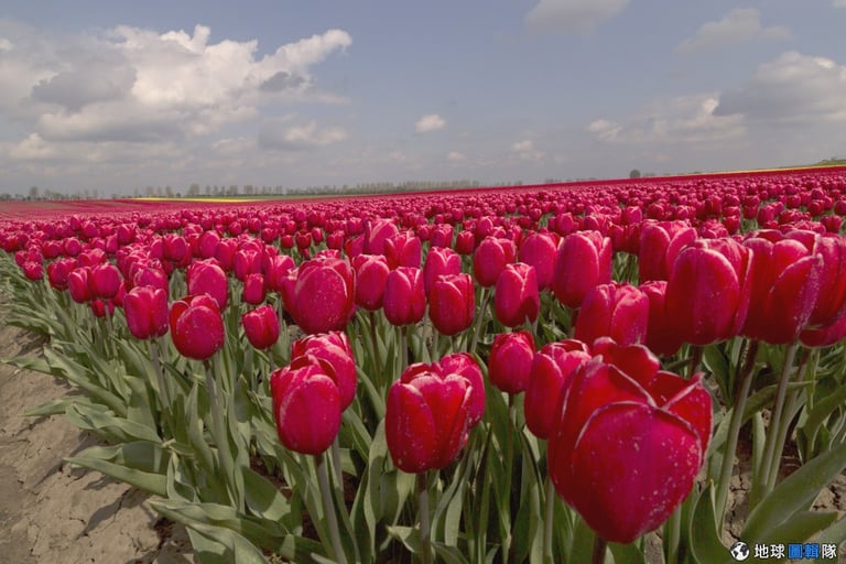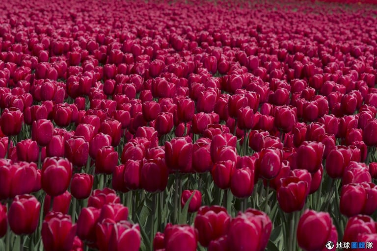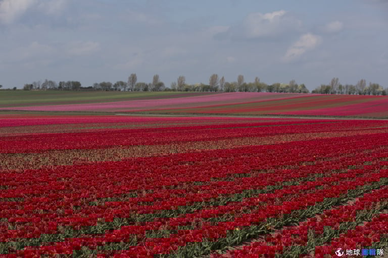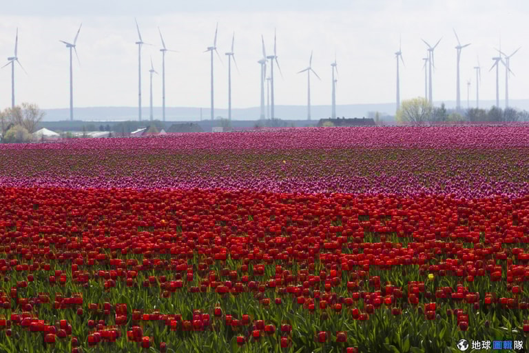 整片綻放的紅色鬱金香花彷彿是整片紅地毯。圖片來源:Carsten Koall/Getty Images
