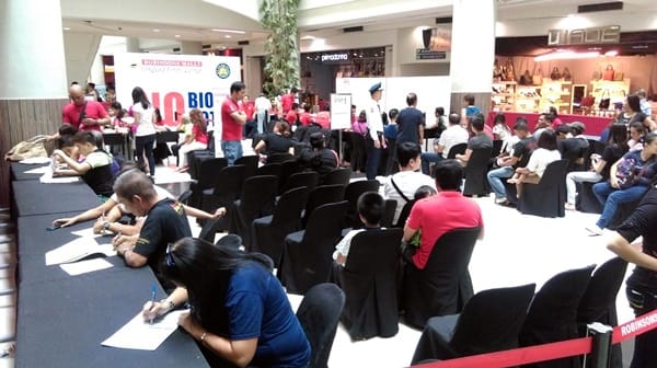菲國明年將舉行總統大選,馬尼拉民眾近期在一家商場辦理選民登記。