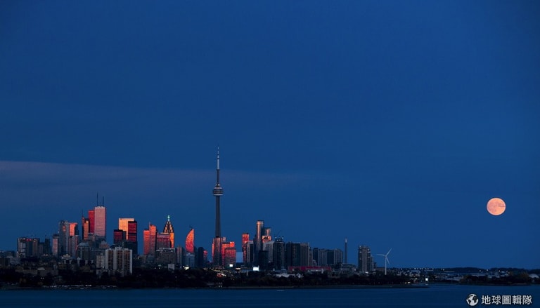 圖為加拿大多倫多地區的夜景,其中加拿大國家電視塔清楚地出現在畫面上。