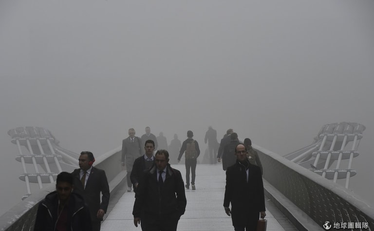 倫敦千禧橋上的大霧,擋住了來來去去上班族的路。近日英國大霧也讓當地機場航班取消或延期,影響範圍遍及各地,而歐洲其他國家也傳出因大霧影響航班起降的消息。