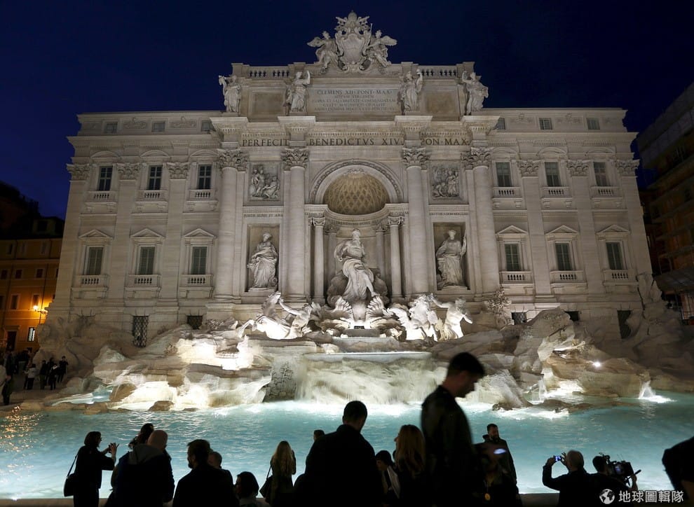 人們在羅馬市中心的特萊維噴泉(Trevi Fountain)前拍照。為了修復用大理石打造的海之信使雕像,這座羅馬地標的噴泉足足整修了 16個月,這也是噴泉 252年歷史中最大規模整修的一次。而負責整修的是義大利奢華品牌Fendi,它一肩挑起整修義大利傾頹名勝的責任,因為公家維修的資金正逐漸減少。