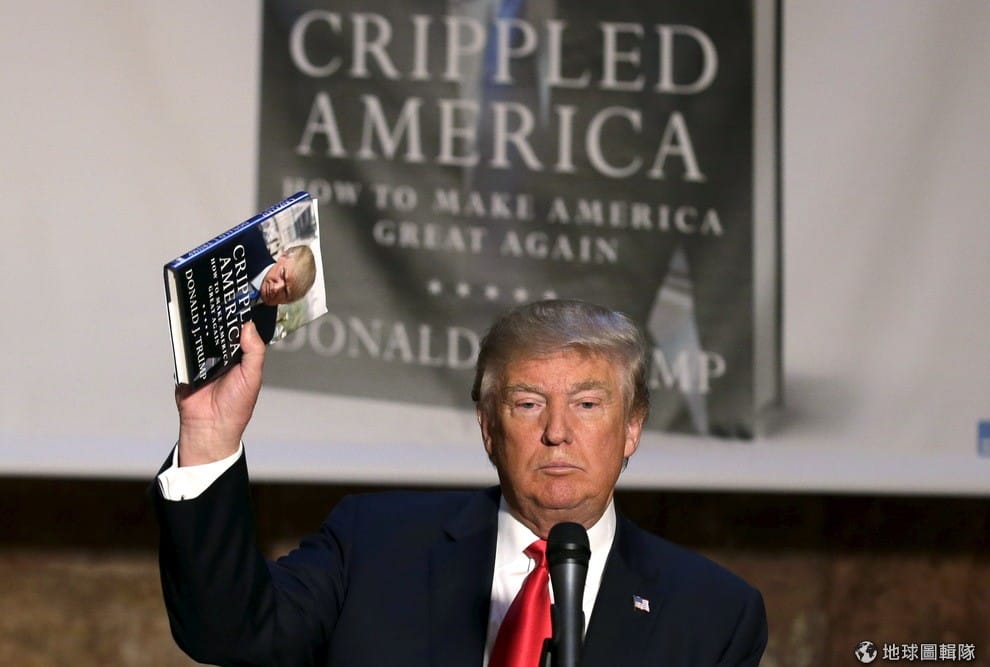 共和黨總統參選人川普(Donald Trump),在記者會上高舉他的新書《殘廢美國》(暫譯,Crippled America),要大家從書中了解他眼中的美國。強烈反對移民的川普受到不少保守派的支持,但在許多墨西哥人的心中卻是頭號公敵。