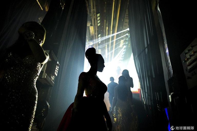 來自澳洲的參賽者在比賽後台對著鏡子檢查妝容。從 2004年開始,每年在泰國的芭達雅都會舉辦世界變性人選美大賽,吸引來自全球的選手參賽,而今年由來自菲律賓的瑪莉史黛拉(Trixie Maristela)獲得冠軍。