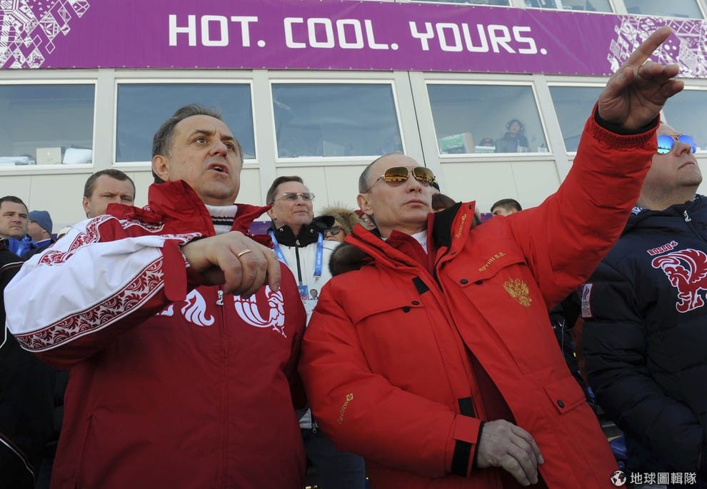 2014俄國索契冬季奧運會上,俄國體育部長穆科(圖左)和俄國總統普亭(圖右)一起觀賽。