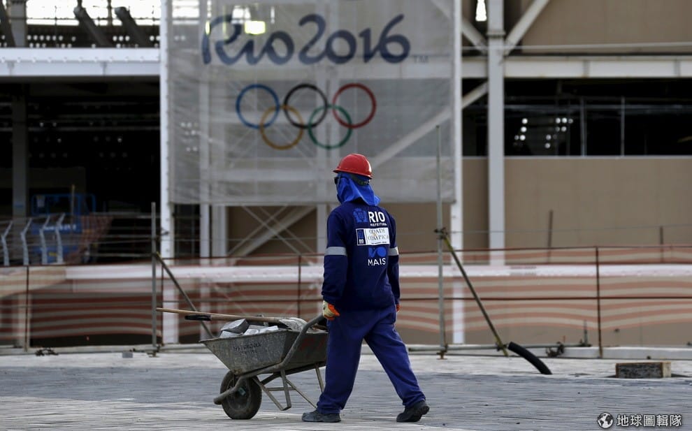 工人們正在趕工建造 2016巴西里約奧運的比賽場館。