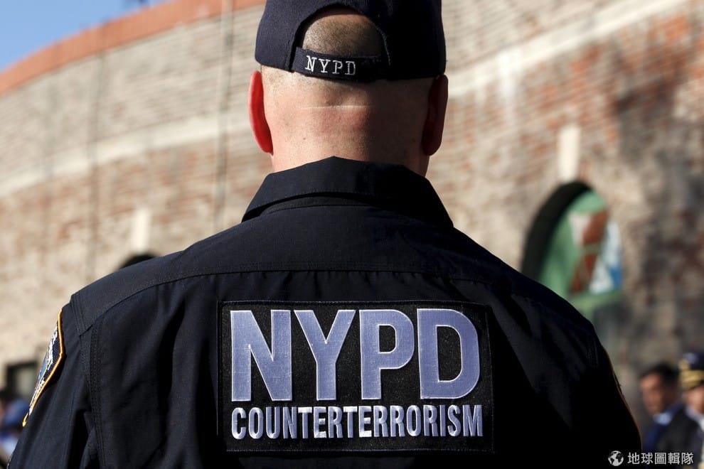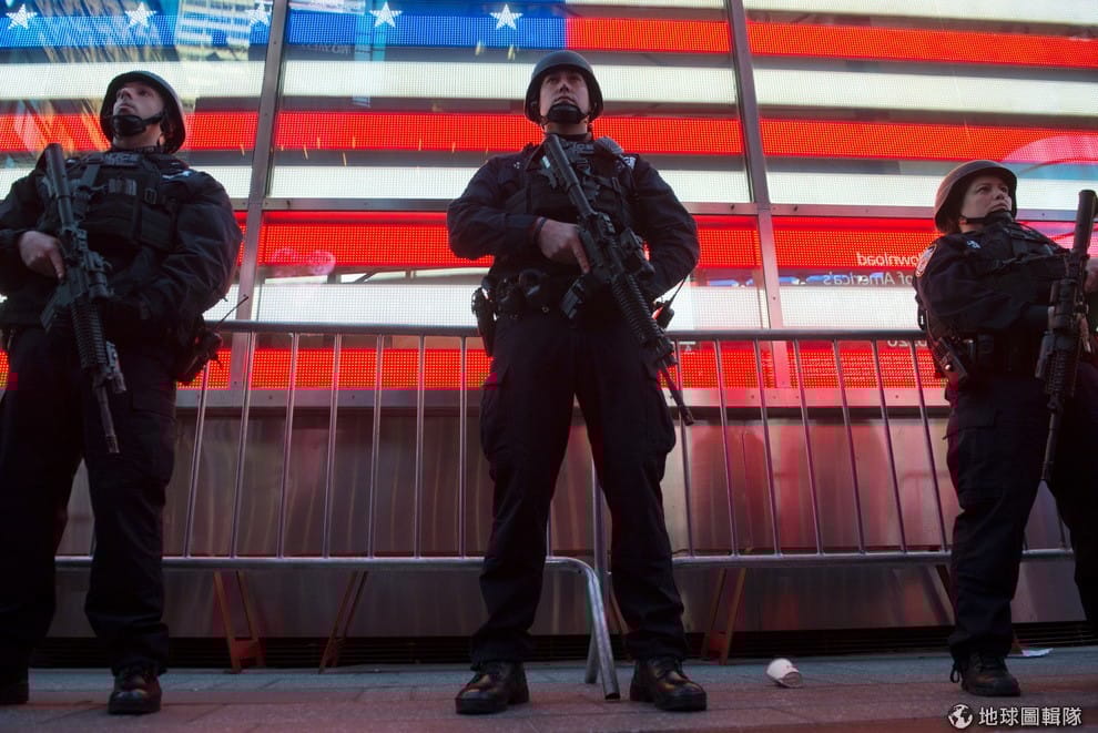 全副武裝的美國警察在紐約街頭待命。在巴黎恐攻後全美草木皆兵,擔心成為下一個恐怖攻擊的目標。