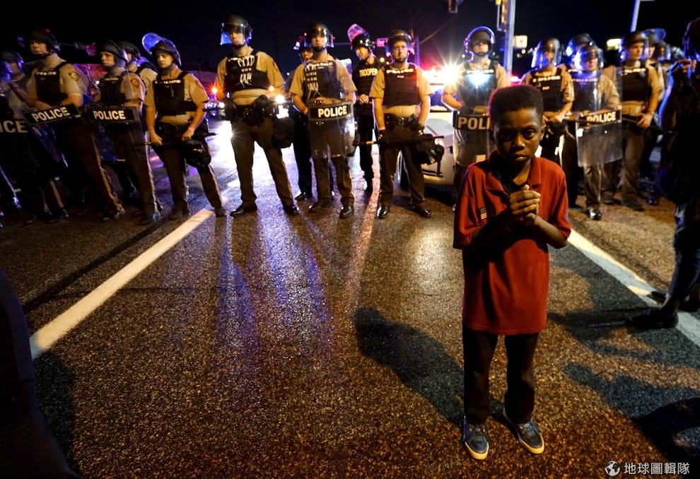 2014年,黑人青年布朗被白人員警威爾森開六槍擊斃,街頭湧現大批民眾上街抗議。