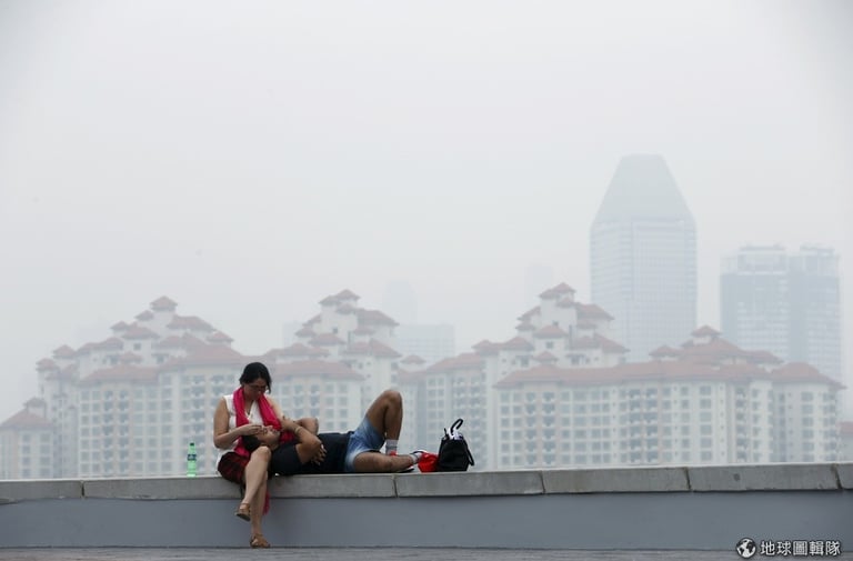 大火製造出霧霾,使得當地一片霧茫茫,許多人紛紛戴上口罩阻擋霾害,這些霧霾甚至飄過大海一路飄到附近的馬來西亞、新加坡,最遠影響到泰國南部。