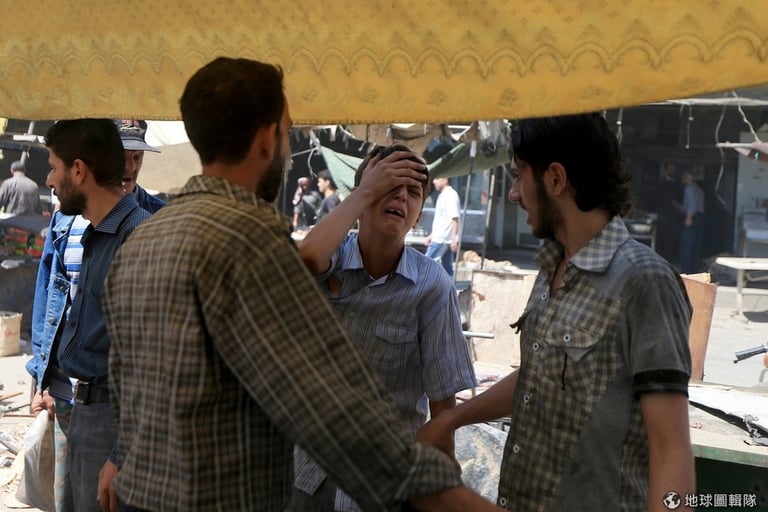 10月30日,敘利亞政府軍朝大馬士革鄰近市鎮的市集發射飛彈,造成數十多人當場炸死,百人受傷。圖中民眾得知親友身亡後忍不住哭泣。大馬士革(Damascus)為敘利亞首都,面積約 105平方公里(台北市面積約為 271平方公里),這裡是全世界最古老的有人持續居住城市,建城至今 4,000多年,而有人居時間更長達一萬年之久。