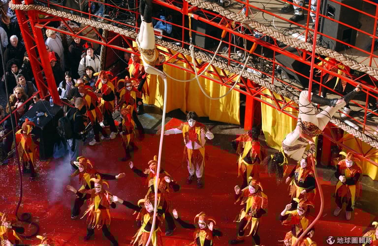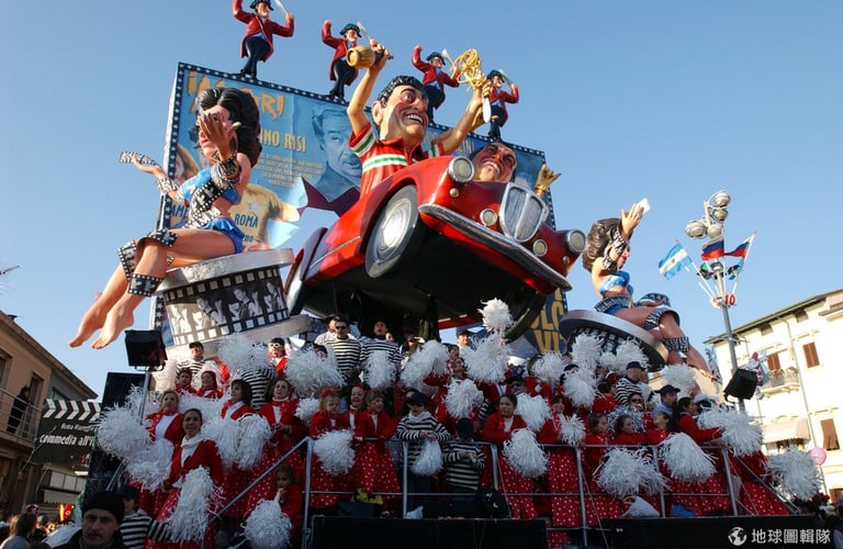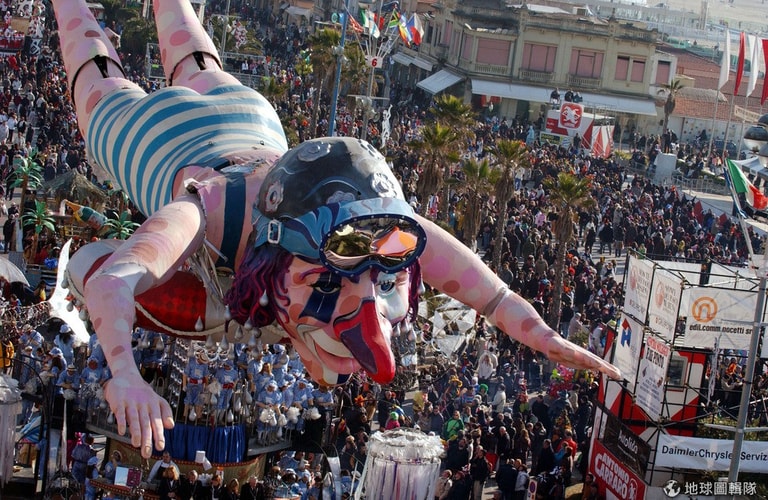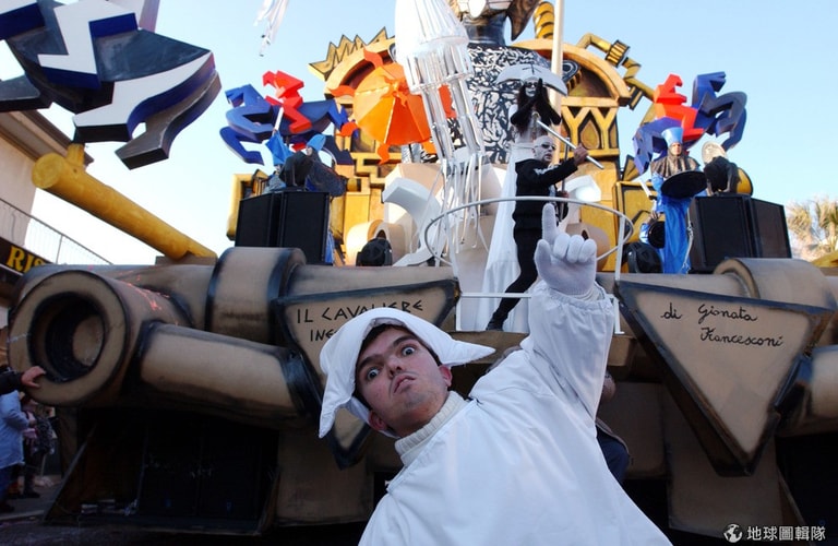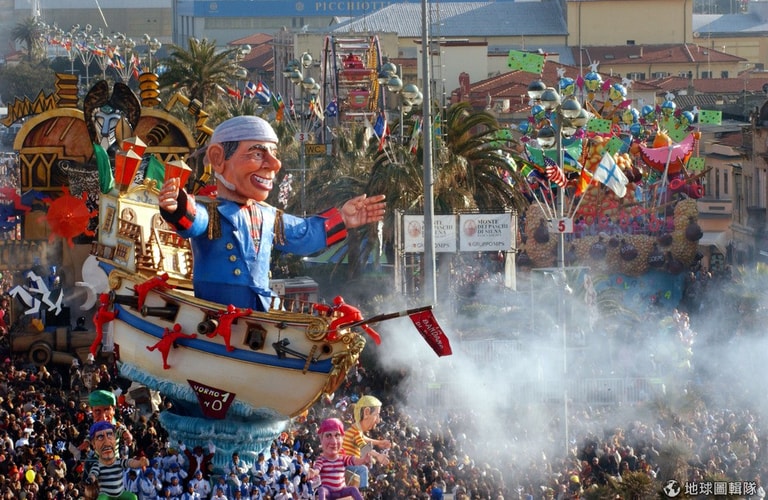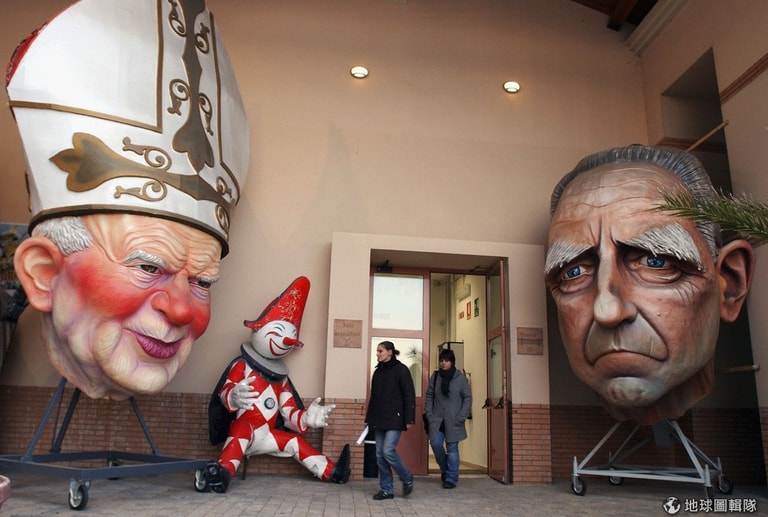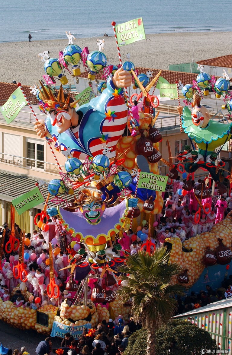 位在義大利北部的維亞雷焦是個濱海的度假小鎮,每年2月中下旬,當地就會舉辦大型的嘉年華會,看似普遍的嘉年華遊行,因為每年的花車主題都能符合時事、充滿令人發噱的看頭。