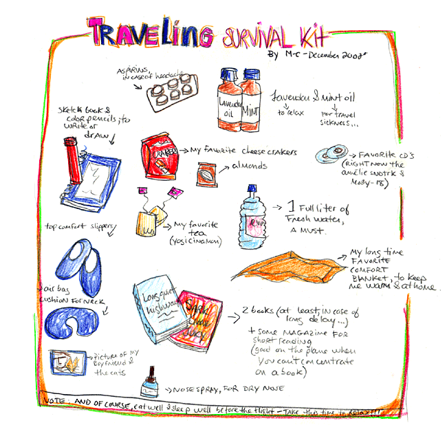 近期各國屢傳恐怖攻擊的消息,喜歡四處旅行的你該就此打消旅遊念頭嗎?圖為網友所繪的旅行求生法寶清單。