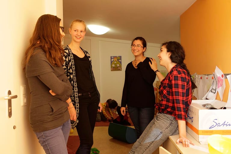 社區不同世代的互動,誕生一個個多代同堂的「大家庭」。「德國老人很孤單,新移民也很孤單。他們一起來,一起玩,最好不過了。這個開放空間想讓互動自然地發生,密切互動會打破家庭的疆界,大家在這裏找到『自己選擇的家人 』」。中心主管 Elke Loh 說,這裏有老少一起的環保手工課、長者游泳班、寶寶按摩班、女性健康講座……中心經常琢磨如何令老少共處。近期就有老少劇組──腦退化症長者和孩子一對一配對演出。長者對童年歌謠往往爛熟於心,不必背台詞。當一個老人和一個孩子在一起時,實際上是兩個孩子在一起。因為他們都有份單純的快樂,喜歡載歌載舞。