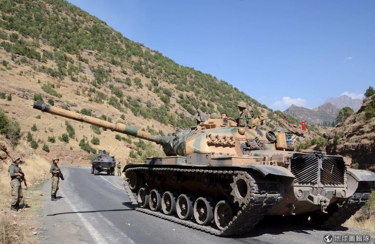 圖為土耳其準備派駐伊拉克北部邊界的坦克車。伊拉克國防部長歐貝迪說,土耳其的駐軍規模太大,他們希望土耳其趕快撤軍。
