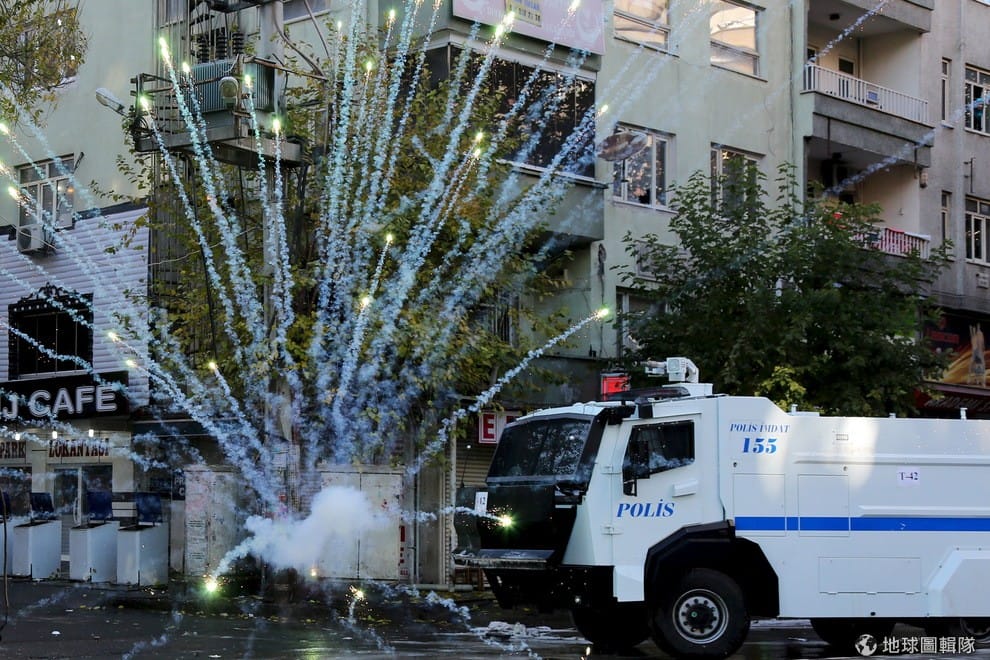 在東南部第一大城迪亞巴克爾,不滿宵禁的民眾朝鎮暴警察丟擲煙火,警方則派出水車還擊。迪亞巴克爾的居民以庫德人為主,該城市被稱為「土耳其庫爾德斯坦的非官方首都」。