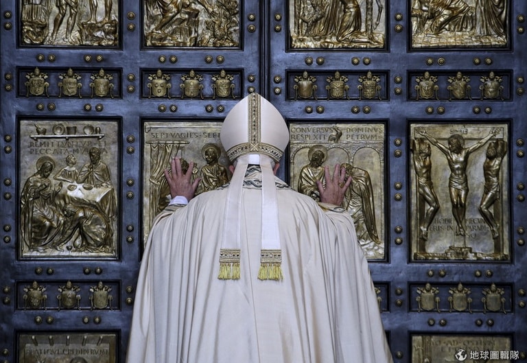 羅馬天主教宗方濟各(Pope Francis)推開位於聖彼得大教堂內的聖門,迎接天主教大赦年的到來。被水泥和沙漿封印的聖門只有在大赦年的時候才會開啟,通過這道門的信徒能透過悔改自己的過失而得到救贖。