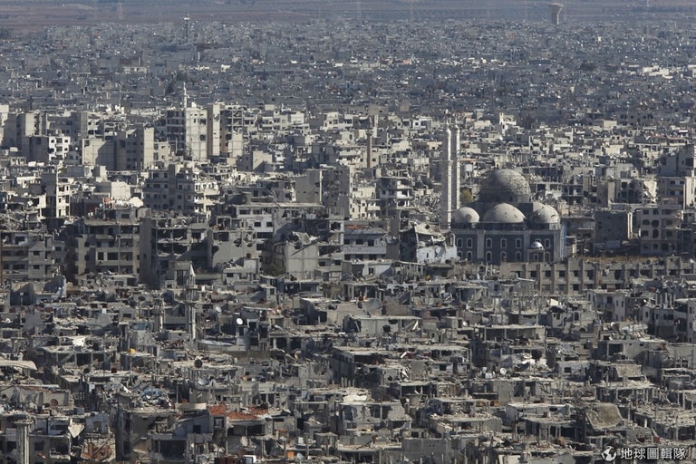 多年來受到空襲轟炸,霍姆斯古城只剩下焦土一片。
