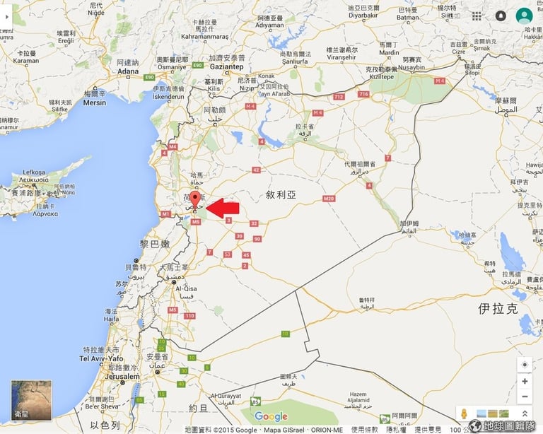 敘利亞國土以及霍姆斯城的相對位置一覽。