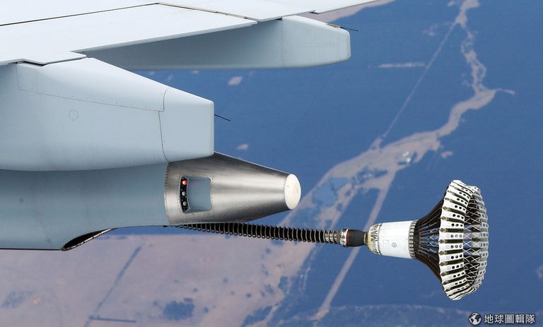 這次KC-30A空中加油機採用的是軟管的加油方式。Michael Dodge/Getty Images