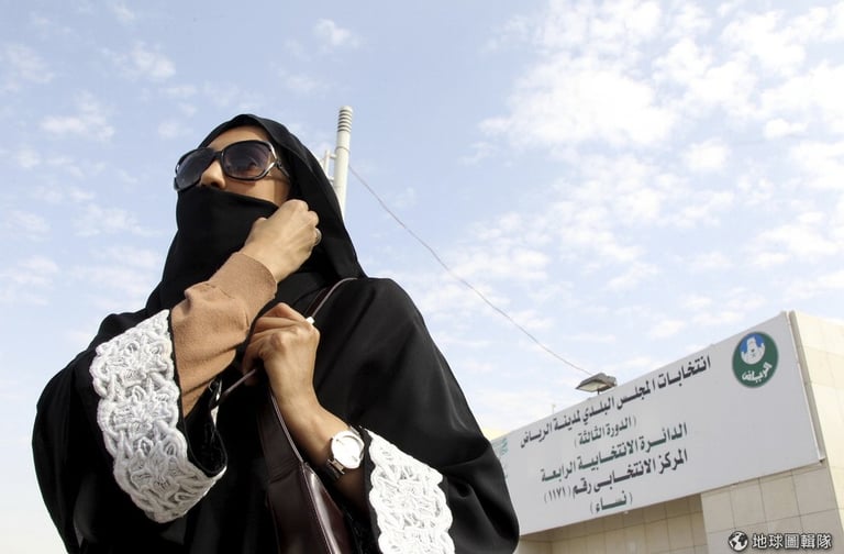 在沙烏地阿拉伯,女性不能開車,在公眾場合必須穿著全身的罩袍,當地也是全球最晚給女性投票權的國家。