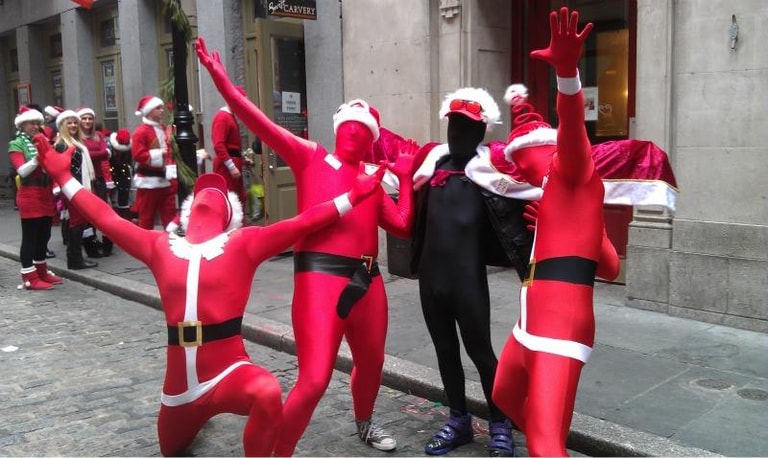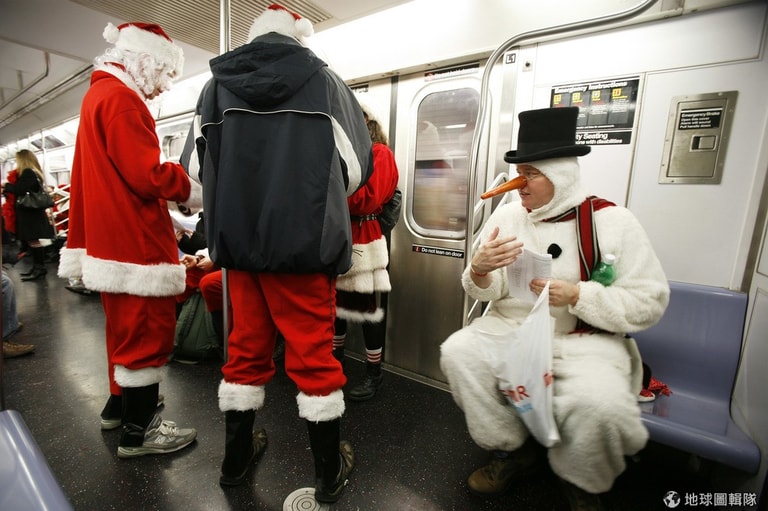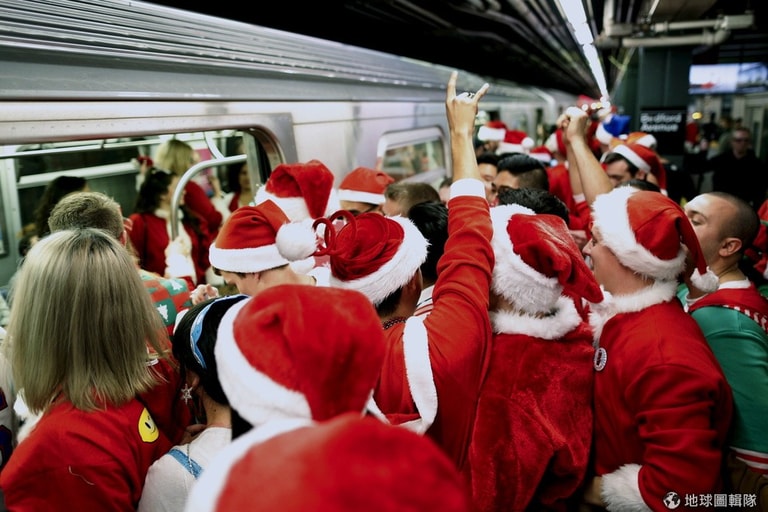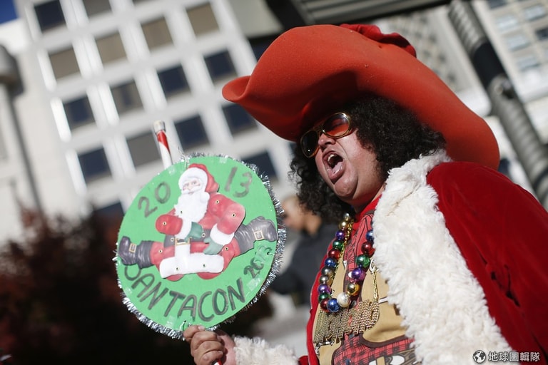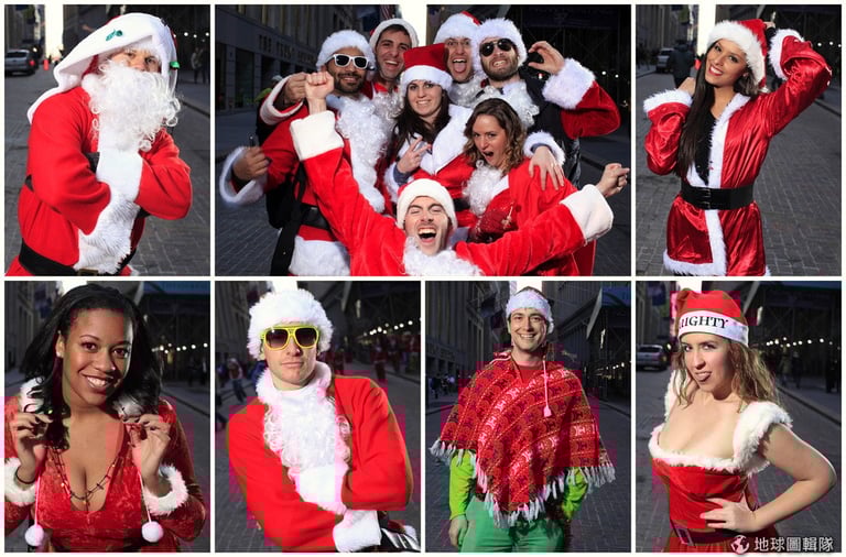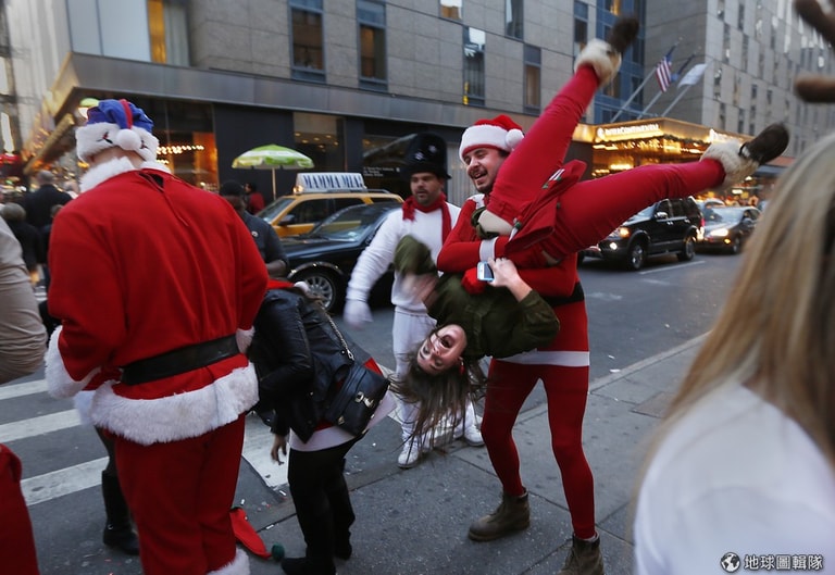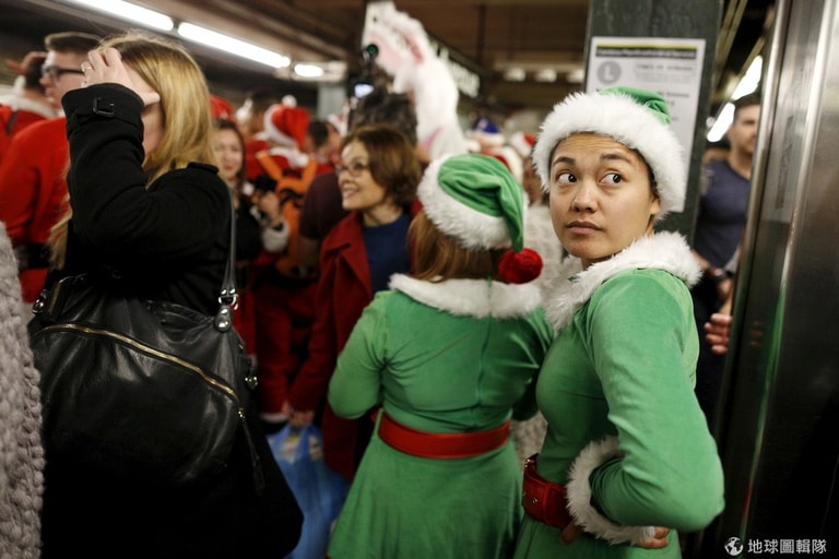 上週六(12)的紐約市區或是地鐵站內,可見許多換上大紅外衣與紅帽子的民眾湧現,因為年度「聖誕老人大會」(SantaCon)再度到來,不管是喜歡聖誕老人、想喚醒大眾捐款做慈善或是討厭消費文化的人們紛紛齊聚,眾人趁機聚會也一同吆喝迎接聖誕。