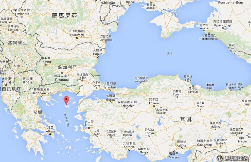 圖中紅色地標處即希臘利姆諾斯島,在該島附近正是這次俄艦朝土耳其漁船開火的地點。