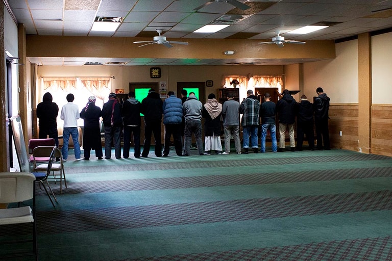 穆斯林在Hamtramck伊斯蘭中心內祈禱。攝 : Laura McDermott/端傳媒