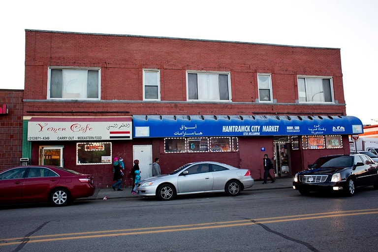 從北到南,你會依次經過已建成約三年的清真寺、營業三十年的波蘭超市、非裔美國人經營的理髮店、復古衣和二手唱片店、倒閉的酒吧、即將開門啟市的清真餐廳、紀念波蘭籍教宗John Paul II的小廣場、孟加拉人的雜貨店、飄出異國香料香氣的也門餐廳……不少店鋪的招牌都寫着阿拉伯語和英語,麥當勞裏幫我點餐的女僱員戴着頭巾,再蓋了一頂棒球帽。我首次到訪小鎮時適逢感恩節,一些店鋪沒有開門,而穆斯林經營的商店照常營業。