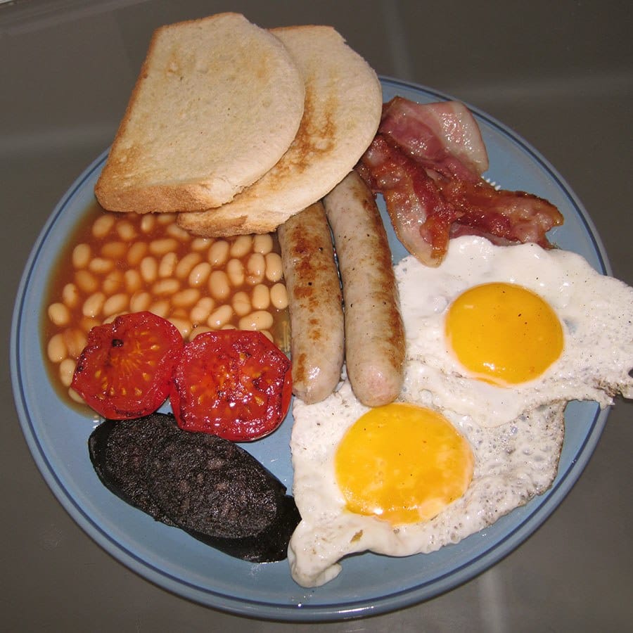 傳統英式風的早餐搭配可能不少人已經知道:蛋、香腸、培根、燉豆以及菇和番茄。