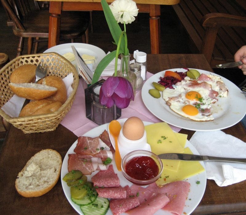 德國人的早餐口味各自不同,但多不脫麵包、肉、起司、奶油和果醬。
