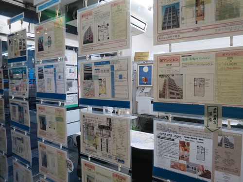 日本租屋多透過仲介來辦理,不動產公司窗外總是布滿廣告。