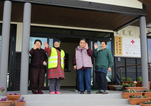 日本自治體對公營住宅整建意願低,台灣曾援建福島縣相馬市狐穴井公營老人住宅。住宅門口掛著紅十字會招牌,感謝台灣的援助。