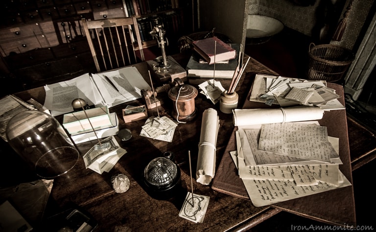 圖為英國生物學家達爾文故居的書房,房裡可以看到手稿散落四處。