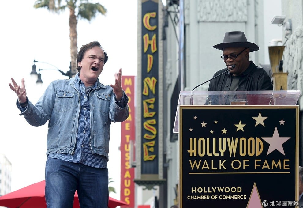 12月21日這天,美國知名演員山謬傑克森(右,Samuel L. Jackson)的名字將正式成為加州好萊塢的星光大道上的一員,照片中可見導演昆汀塔倫提諾(Quentin Tarantino)對著身旁的山謬傑克森高歌一曲,他們兩人在過去有多次合作關係,例如電影《決殺令》(Django Unchained)就是一例。